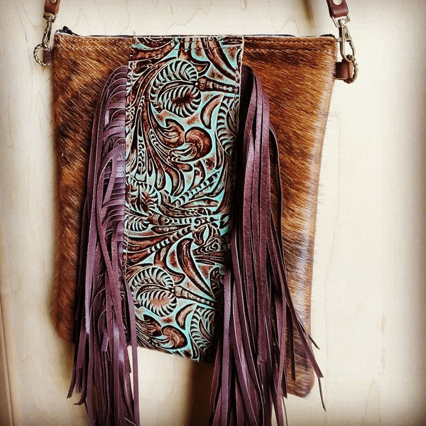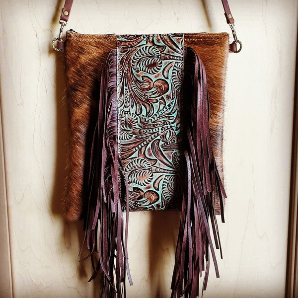Hair on Hide w/Turquoise Floral Center Handbag